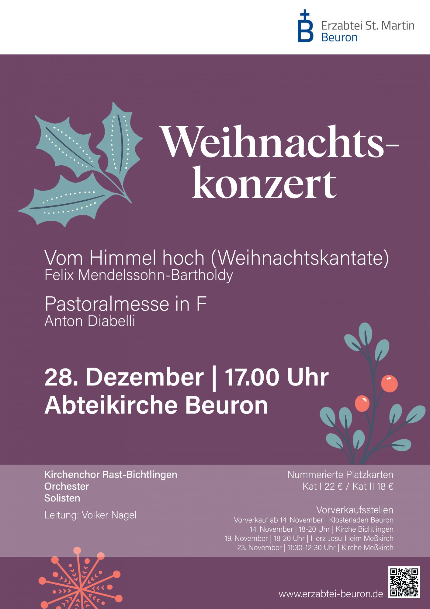 Weihnachtskonzert in der Abteikirche 28.12.2025, 17:00 – 19:00 UhrZum Weihnachtskonzert des Kirchenchors Rast-Bichtlingen mit Orchester und Solisten heißen wir Sie bereits jetzt herzlich willkommen.Informationen zum zum Ticket-Vorverkauf finden Sie hier:Kategorien:Konzert